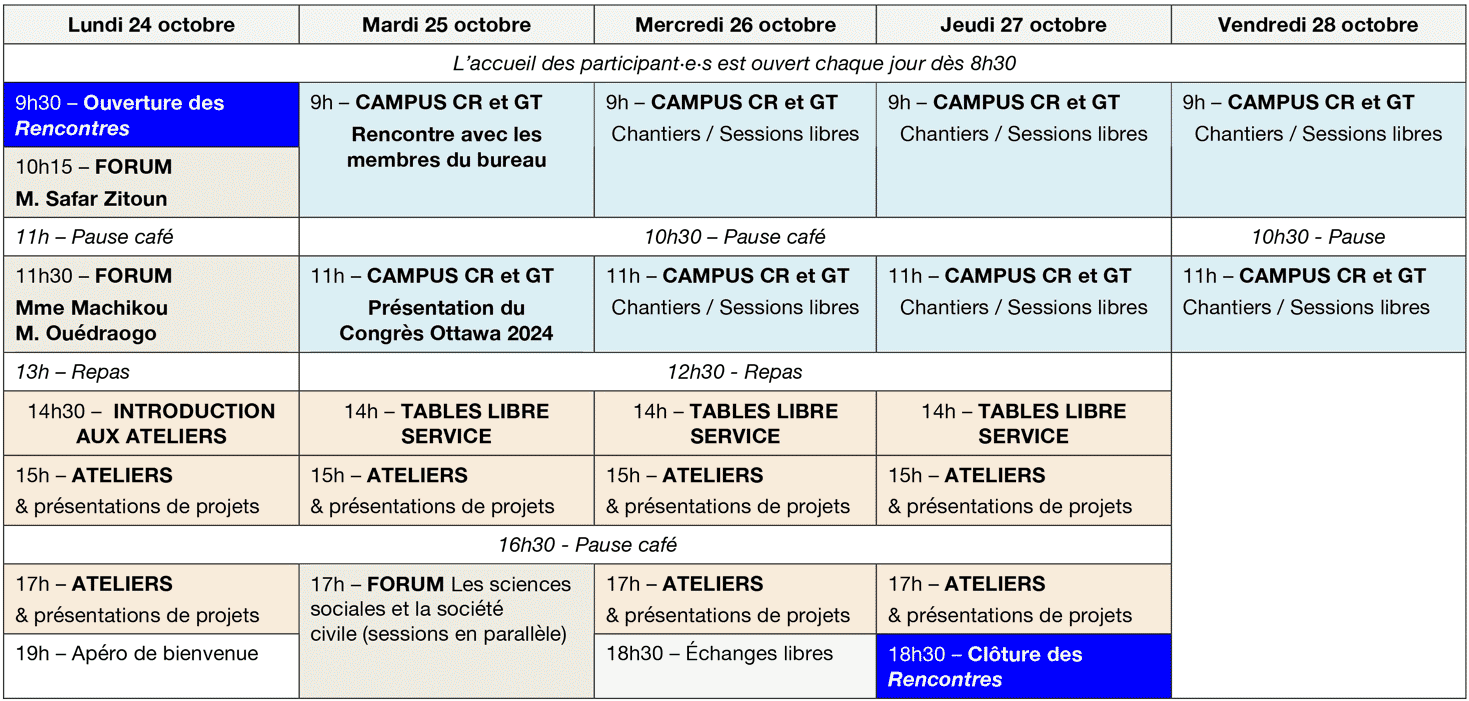 Programme susceptible d'être adapté. Les sessions du Campus et des Ateliers peuvent se dérouler en parallèle.
